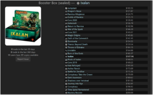 Sealed product has always been a black eye for Cardsphere. It was half paywalled, and pegged to MSRP, partly because of a lack of sealed pricing at the time, and partly because we did not have the development time to make it happen. That’s all changed as of today, and sealed products will now follow market prices and behave the same way that cards do.